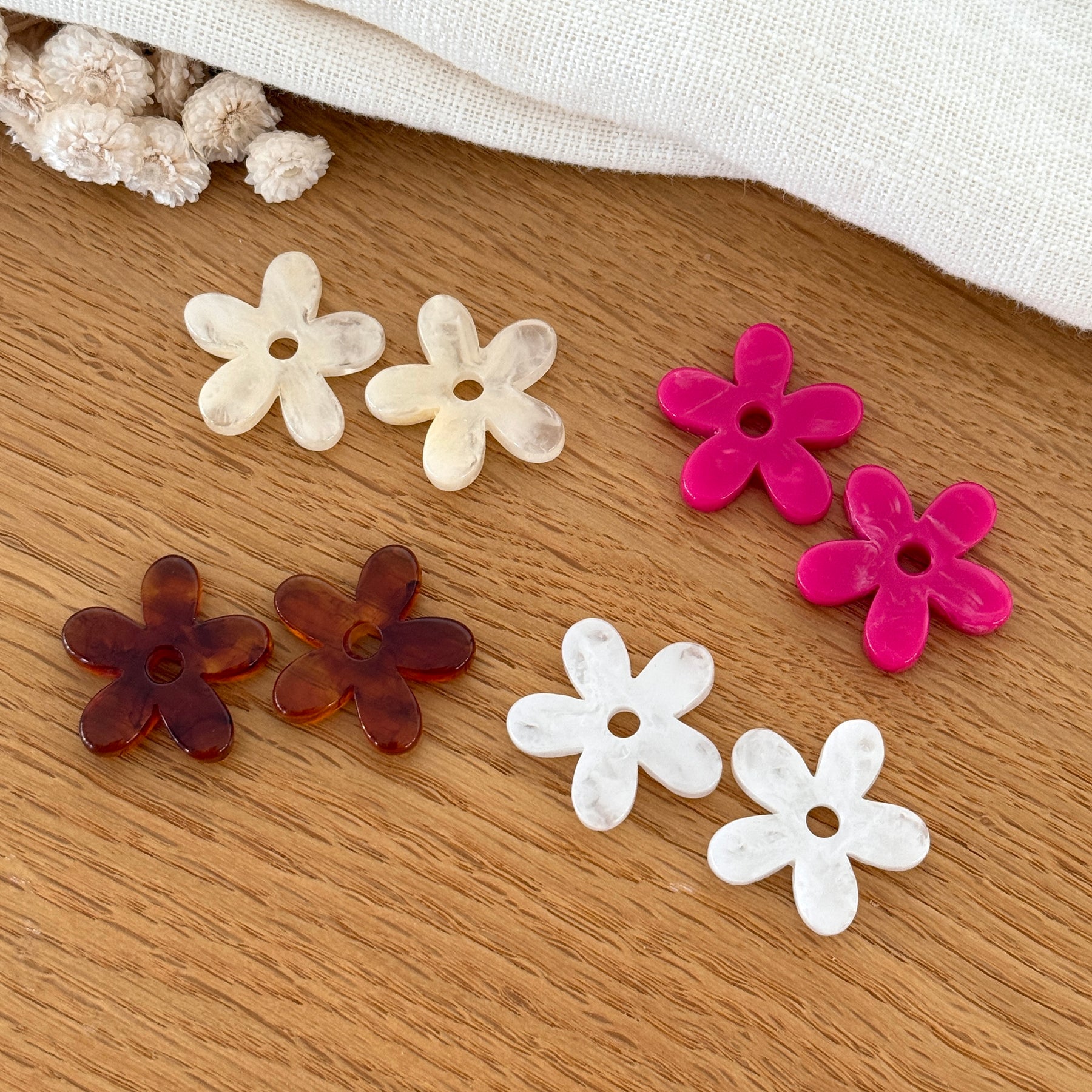 - Fleurs à assembler sur les créoles Filo ou à interchanger sur votre paire de créoles Maria